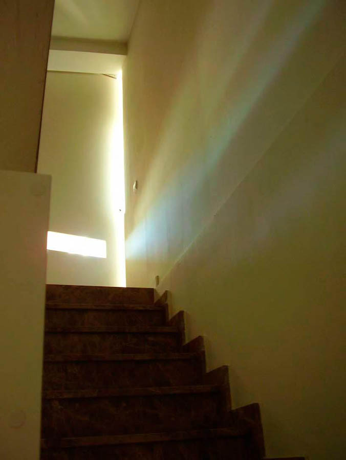 - La planta superior del dúplex y antiguo palomar, es un espacio único y flexible con un gran mirador estudio que se incorpora a la zona de dormitorio mediante un tabique corredero. La zona de dormir es más introspectiva con veluz para ver las estrellas y con notas de color.